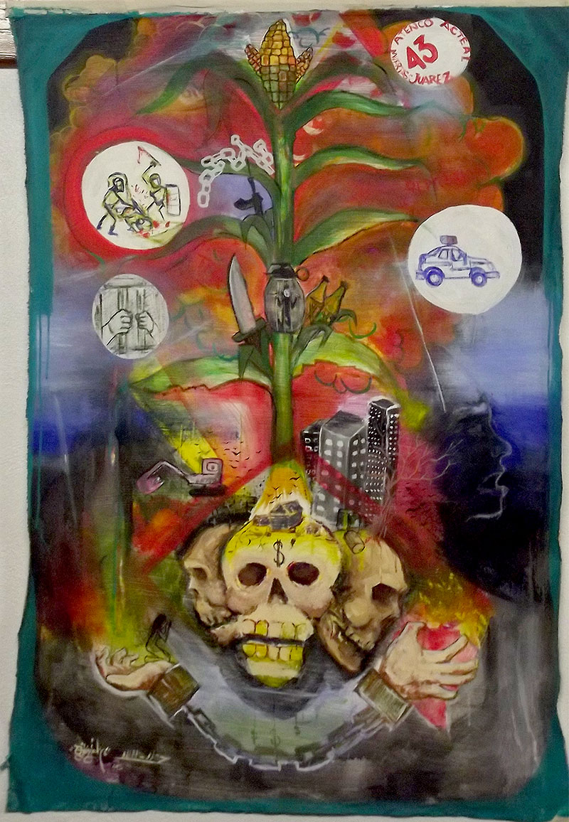 - “El desastre”, manta dibujada en el marco del XX° Aniversario de SIPAZ © SIPAZ