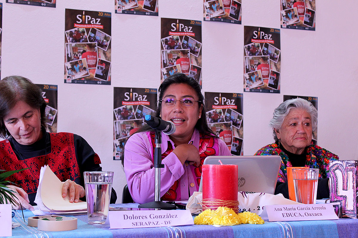 01/02/2016A finales de noviembre de 2015, el equipo y la Junta Directiva del Servicio Internacional para la Paz (SIPAZ), junto con más de 130 participantes de diferentes estados de México y de fuera del país, celebramos nuestro 20° aniversario de presencia en el sur de México. Si bien puede considerarse como un logro la permanencia de SIPAZ a lo largo de 20 años, pese a los retos que se debieron enfrentar, no deja de ser preocupante que al cabo de ese tiempo siga siendo necesaria una presencia internacional por la paz. Aunque, desde esta perspectiva no haya mucho que celebrar, a dos décadas de la existencia de SIPAZ, pensamos que tenemos un gran capital que compartir sobre lo aprendido a lo largo del camino. Como lo expresó Ana María García de Servicios para una Educación Alternativa (EDUCA), Oaxaca, quien participó como ponente en el evento, «[n]o celebramos que la realidad sea la misma sino que sigamos con esperanza y dignidad luchando«.